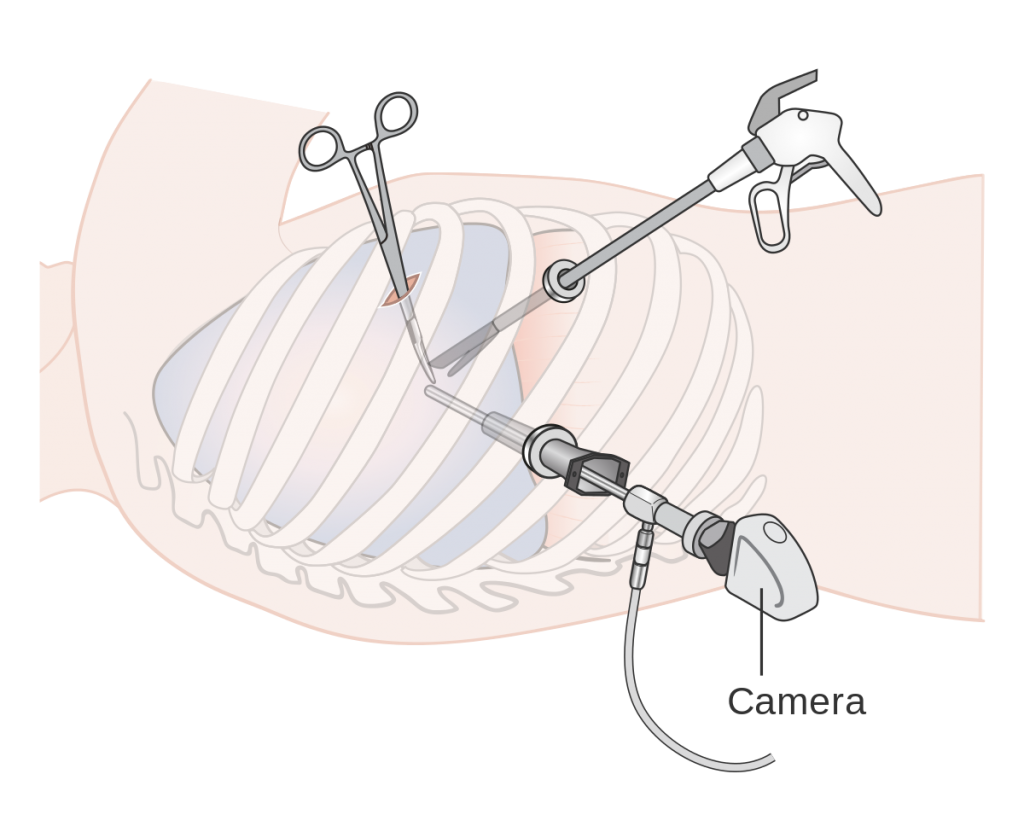 Thoracoscopy is a procedure where a scope is passed through the chest wall to look inside the chest for any mass lesions or fluid. It is done for diagnostic and therapeutic purposes. It is a medical procedure involving internal examination, biopsy, and/or resection of disease or masses within the pleural cavity and thoracic cavity. Thoracoscopy may be performed either under general anesthesia or under sedation with a local anesthetic.